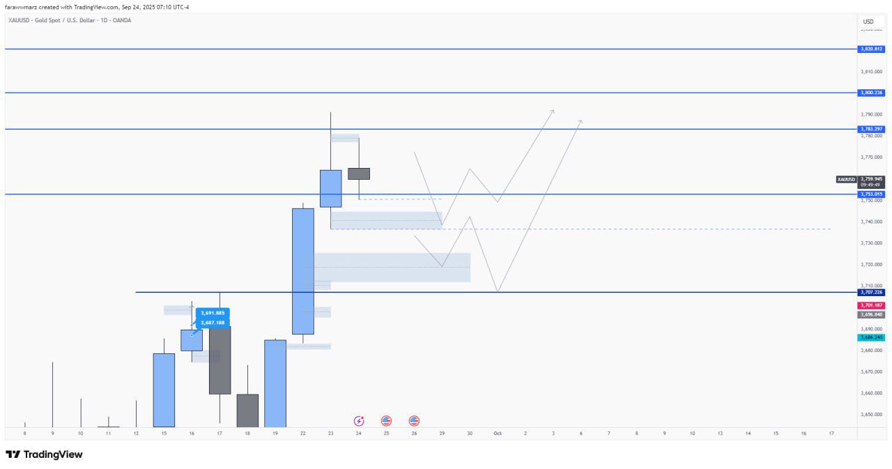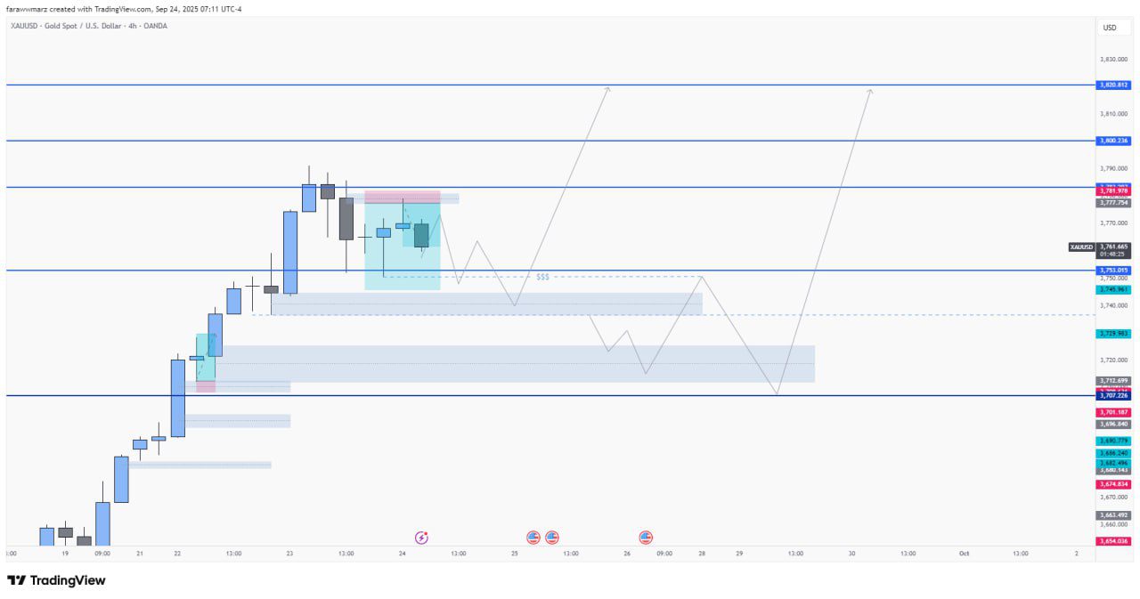 تا زمانی که قیمت بالای 3747 دلار حفظ شود، سناریوی صعودی معتبر خواهد بود.