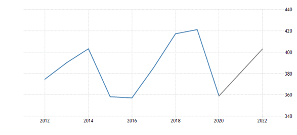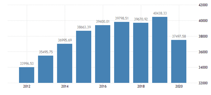 سرانه تولید ناخالص داخلی کشور امارات متحده عربی بین سال­های ۲۰۱۲ تا ۲۰۲۰