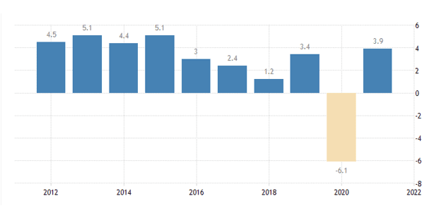 تولید ناخالص داخلی (GDP) در امارات متحده عربی در سه ماهه چهارم سال ۲۰۲۱ نسبت به سه ماهه مشابه سال قبل ۳.۹ درصد افزایش یافته است.