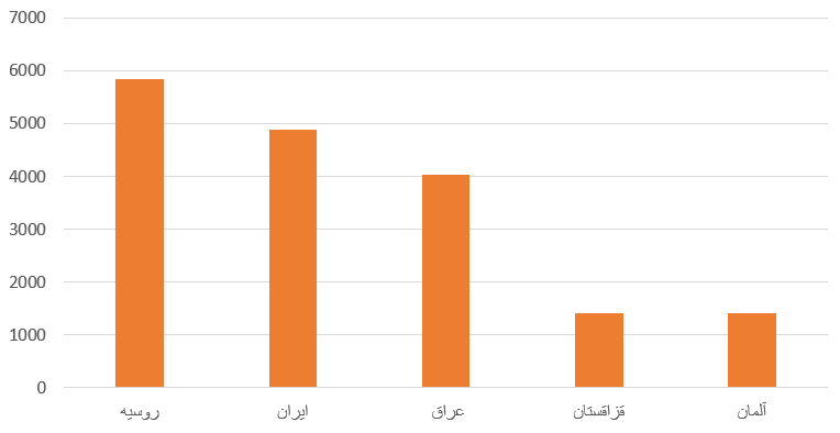 شکل1. شهروندان 5 کشور که بیشترین میزان املاک مسکونی در کشور ترکیه خریداری کرده اند