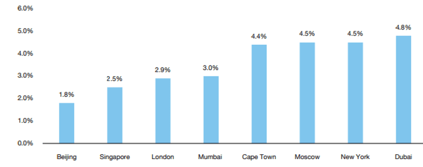 در مقایسه با سایر مراکز جهانی، دبی بازده اجاره جذابی دارد. همراه با افزایش در قیمت ملک، بازده اجاره می تواند به طور قابل توجهی به سرمایه گذار در بازگشت سرمایه کمک کند.